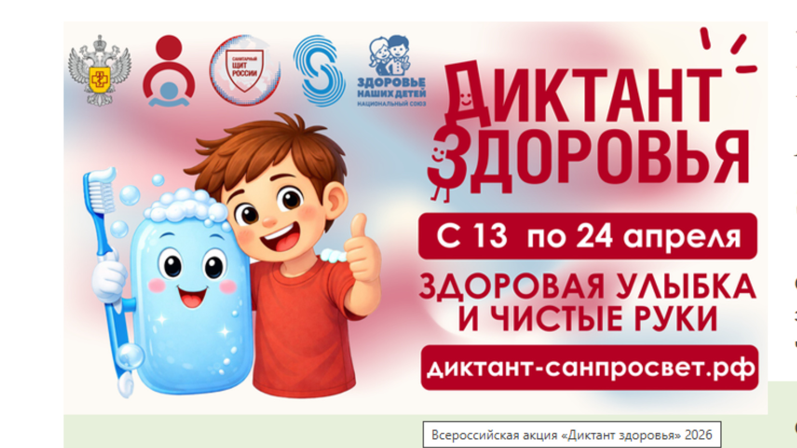 Первый этап -«Здоровая улыбка и чистые руки»- продлится по 24 апреля.