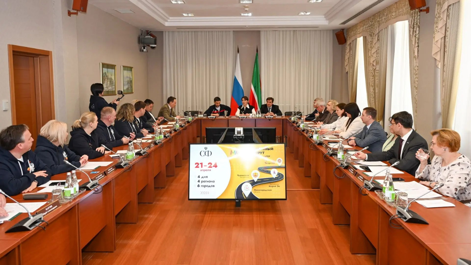 Работа сенаторов в Татарстане началась со встречи в Государственом Совете республики. Открывая заседание, заместитель Премьер-министра Лейла Фазлеева, поприветствовав сенаторов от имени Раиса республики Рустама Минниханова, отметила: «Сегодня у нас в зале коллеги их системы здравоохранения, культуры, социальной защиты и спорта, поскольку направление, которое вы выбрали для визита, связано с этими сферами. Именно поэтому мы подготовили все объекты, которые могут показаться вам интересными, поделимся практиками социальной и спортивной реабилитации среди участников специальной военной операции».