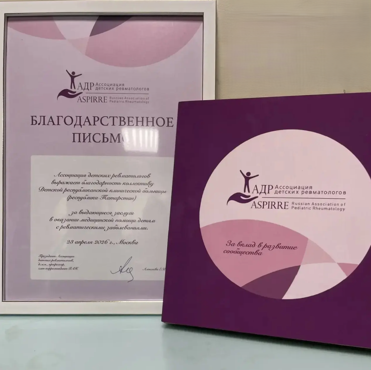 Полученная благодарность стала подтверждением системной работы ДРКБ по оказанию специализированной медицинской помощи детям с ревматологическими заболеваниями в Республике Татарстан.