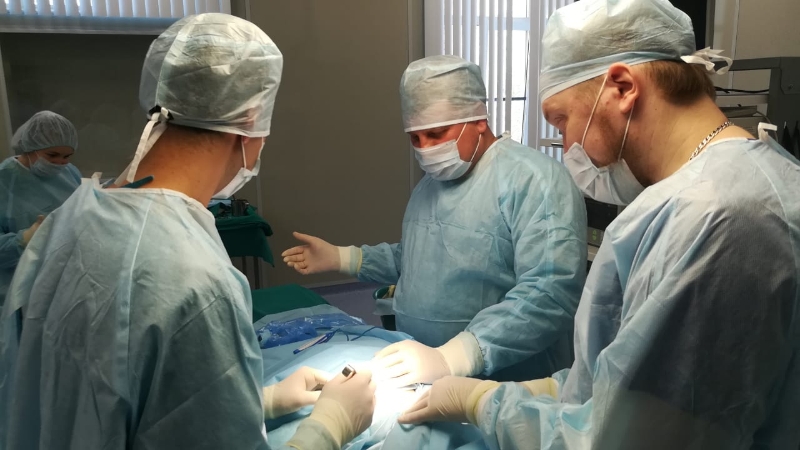 Медицина фәннәре докторы, КФУның ФМһБИ хирургия, акушерлык һәм гинекология кафедрасы мөдире, КФУ Университет клиникасының табибы-хирургы Сергей Зинченко җитәкчелегендә паращитовид бизләрнең интраоперацион флюорисцент визуализациясе буенча регионара мастер-класс чикләрендә ике күрсәтмә операция уздырылды. Хирургик дәвалау вакытында паращитовид бизләрне диагностикалау өчен флюоресцент эффект булган препарат кулланылды.