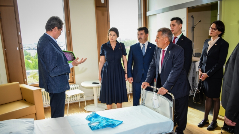 Татарстан Республикасы Президенты Рөстәм Миңнеханов һәм ТР Сәламәтлек саклау министрлыгы делегациясе Хельсинкида яңа балалар хастаханәсенә килеп киттеләр.