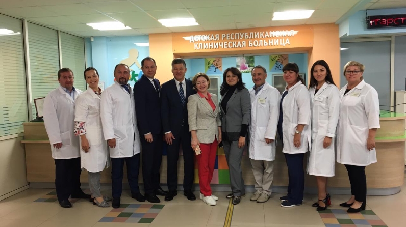 ТР Премьер-министры урынбасары Ләйлә Фазлеева һәм ТР сәламәтлек саклау министры урынбасары Илдар Фатыйхов озатуында Балалар Республика клиник хастаханәсенә эш визиты белән Башкортостан Республикасы Хөкүмәте Премьер-министры урынбасары вазифаларын башкаручы Ленар Иванов җитәкчелегендә Башкортостан делегациясе килеп китте.
