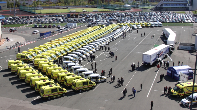 Бүген Татарстан Республикасы Президенты Рөстәм Миңнеханов Татарстан табибларына ашыгыч ярдәм машиналарыннан һәм күчмә медицина комплексларыннан ачкычларны тапшырды. Быел барлыгы 187 автомобиль тапшырылачак.