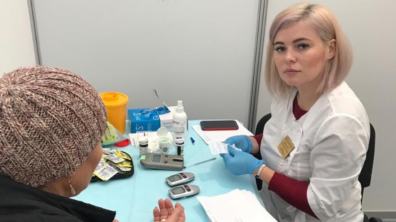 Казанның 16нчы номерлы ШКХ шәфкать туташлары «Казан ярминкәсе» күргәзмә үзәгендә «Актив озын гомерлелек» күргәзмәсендә эшлиләр.