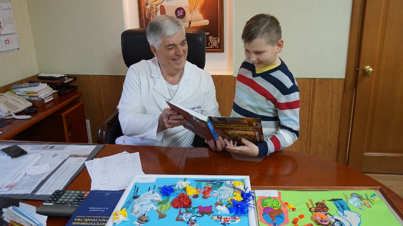 «Мин эшче булыр идем...» дип аталган иң яхшы рәсемгә республика конкурсында катнашучылар абыйлы-энеле Алмаз һәм Әмирхан Сәгъдиевлар «ТКҮРКПХ» ДАССУнең баш табибына үз куллары белән ясалган картиналарны бүләк иттеләр.