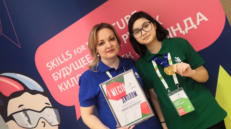«Түбән Кама медицина көллияте» ДАҺББУнең мәйданчыкларында тренер-эксперт, практик белем бирү мөдире Светлана Сычева җитәкчелегендә хәзерләнү үткән Түбән Кама шәһәренең 8нче сыйныф укучысы Азалия Вилданова алтын медаль яулады.