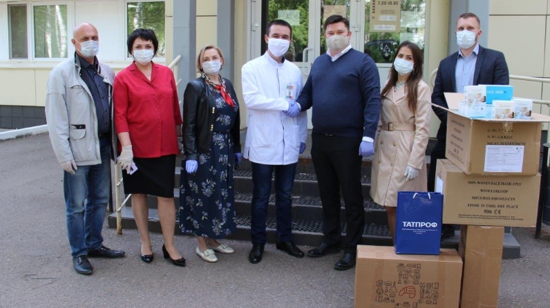 «ТАТПРОФ» АҖ генераль директоры Сергей Рачков инициативасы белән Кама балалар медицина үзәгенең медицина хезмәткәрләренә бер тапкыр кулланыла торган 10000 һәм күп тапкыр кулланыла торган 4000 саклану битлеге, шулай ук контактсыз 3 термометр тапшырылды.