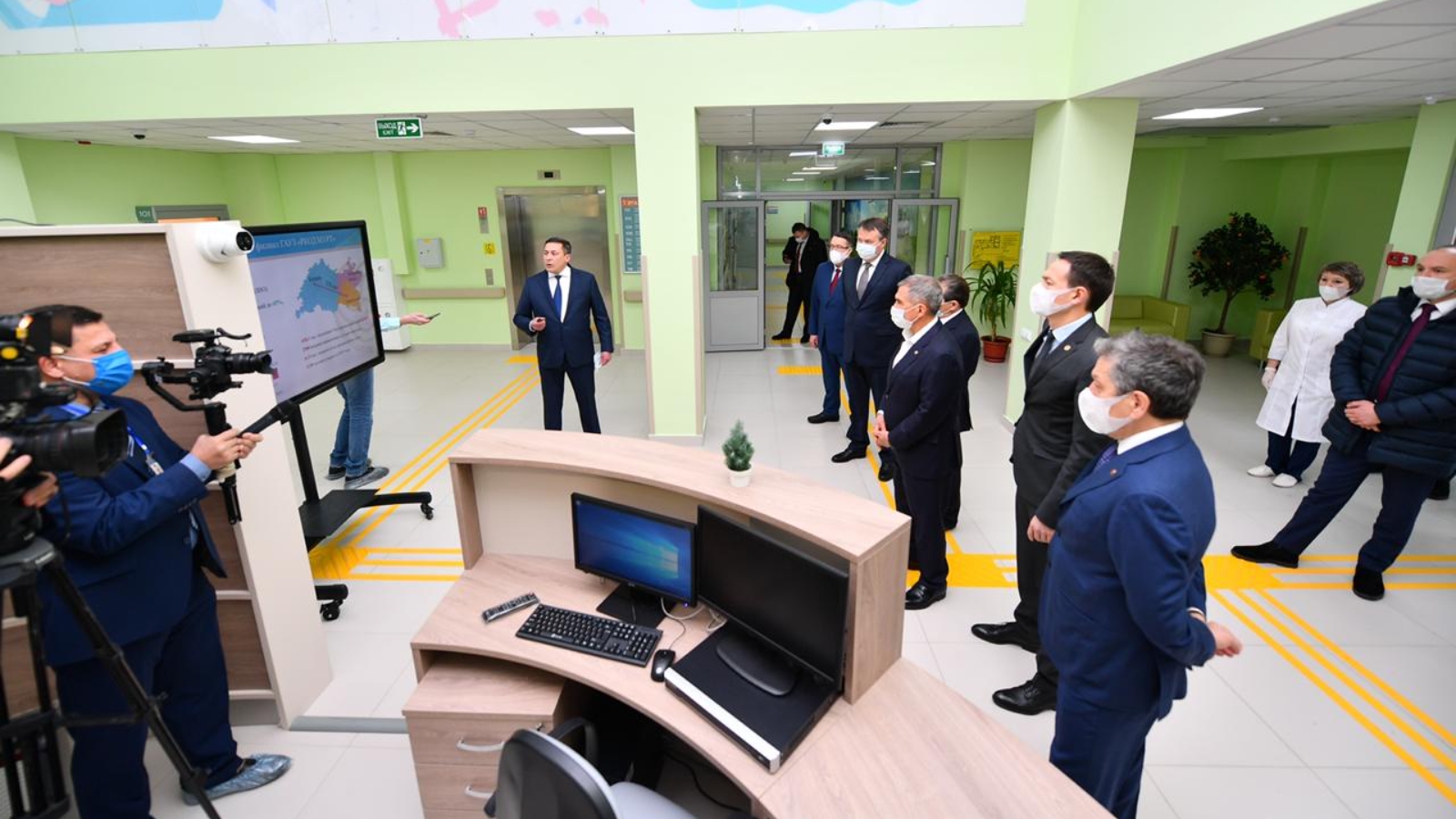 Бүген Татарстан Республикасы Президенты Рөстәм Миңнеханов Республика клиник онкология диспансеры Әлмәт филиалының яңа радиология корпусында булды.