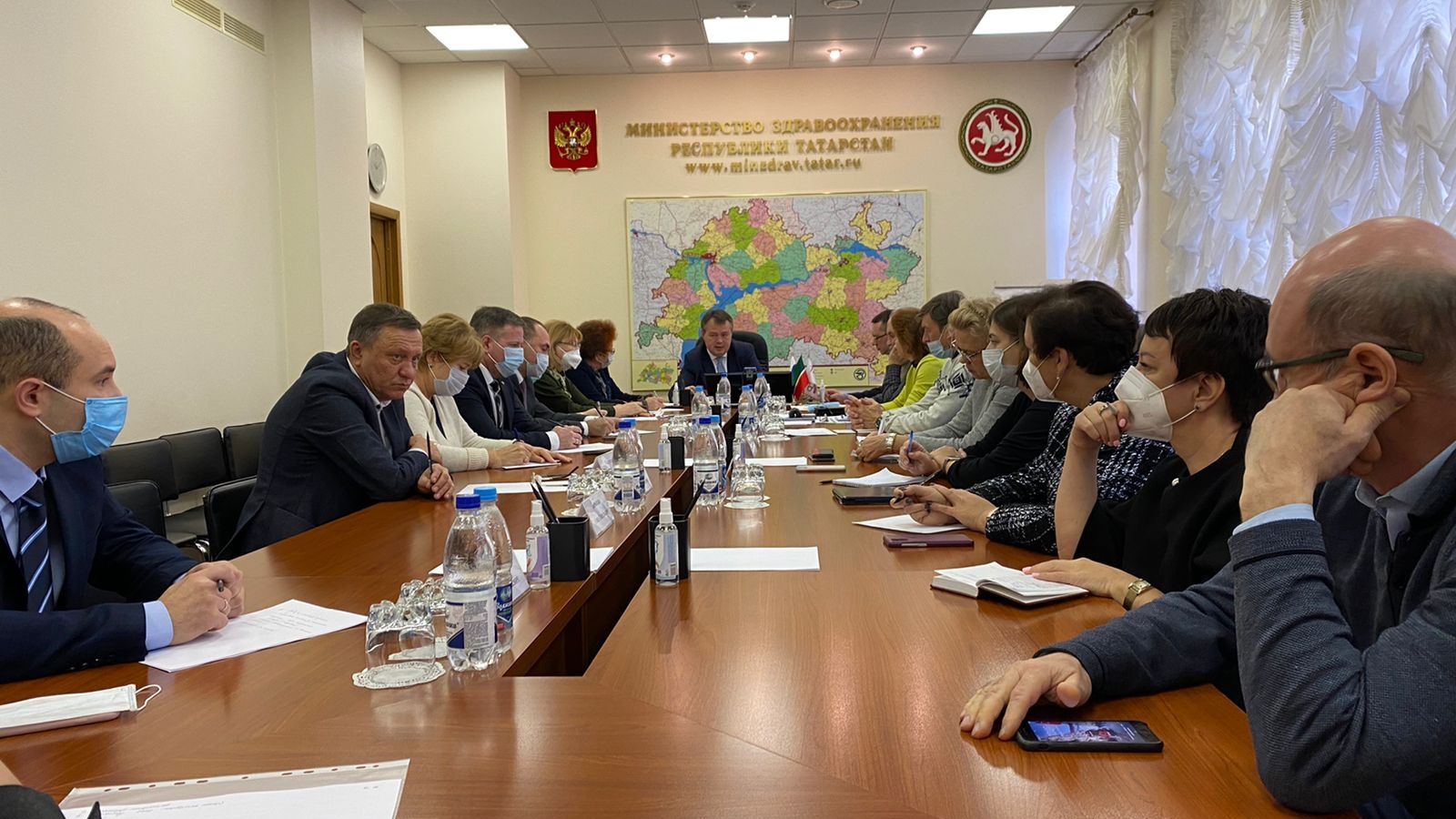 Бүген Татарстан Республикасы Сәламәтлек саклау министрлыгында Мәскәү делегациясе катнашында балалар сәламәтлеге мәсьәләләре буенча киңәшмә узды. Татарстанга илнең әйдәүче анестезиологлары-реаниматологлары, неонатологлары, балалар неврологлары һәм педиатрлары килде. Киңәшмәне сәламәтлек саклау министрының беренче урынбасары Альмир Абашев үткәрде. Очрашуда күчмә аудит нәтиҗәләре буенча фикер алыштылар һәм алдагы уртак эш планын билгеләделәр. Төркем җитәкчесе Татьяна Куличенко җитәкчелегендәге делегация - РФ Сәламәтлек саклау министрлыгының баш штаттан тыш белгеч - педиатры - БРКХнең барлык бүлекчәләрендә булып, аларның эше белән танышты. Баш табиб Айрат Зиатдинов җитәкчелегендәге хастаханә администрациясе кунакларга медицина учреждениесе структурасы, төп эш урыннары һәм хәл ителергә тиешле мәсьәләләр турында сөйләде. Кунаклар алга таба эшчәнлекне камилләштерү буенча киңәшләр бирде.