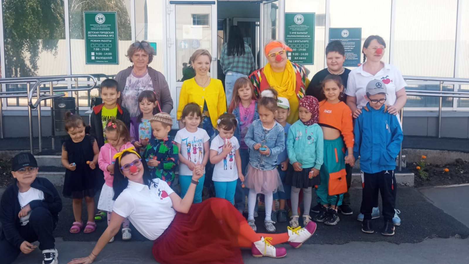 Бүген Чаллы шәһәренең 3 нче балалар поликлиникасына килгән яшь пациентларны Халыкара балаларны яклау көне белән хастаханә клоуннары котлады
