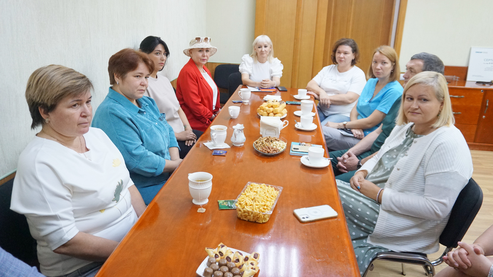 Җылы шартларда чәй эчкәндә Түбән Кама хастаханәсе баш табибы Руслан Вәлиев «Мы вместе – Без Бергә» хәйрия оешмасы вәкилләре белән очрашты.