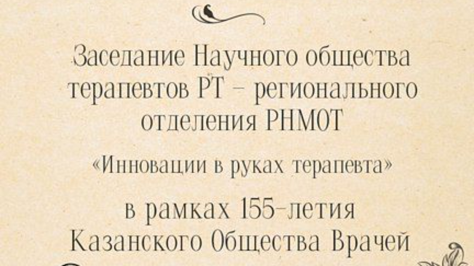 Казан Табиблар җәмгыятенең 155 еллыгы кысаларында 14 сентябрьдә Татарстан Республикасы терапевтлары фәнни җәмгыятенең төбәк бүлегенең - «Терапевт кулында инновацияләр» утырышы узачак.