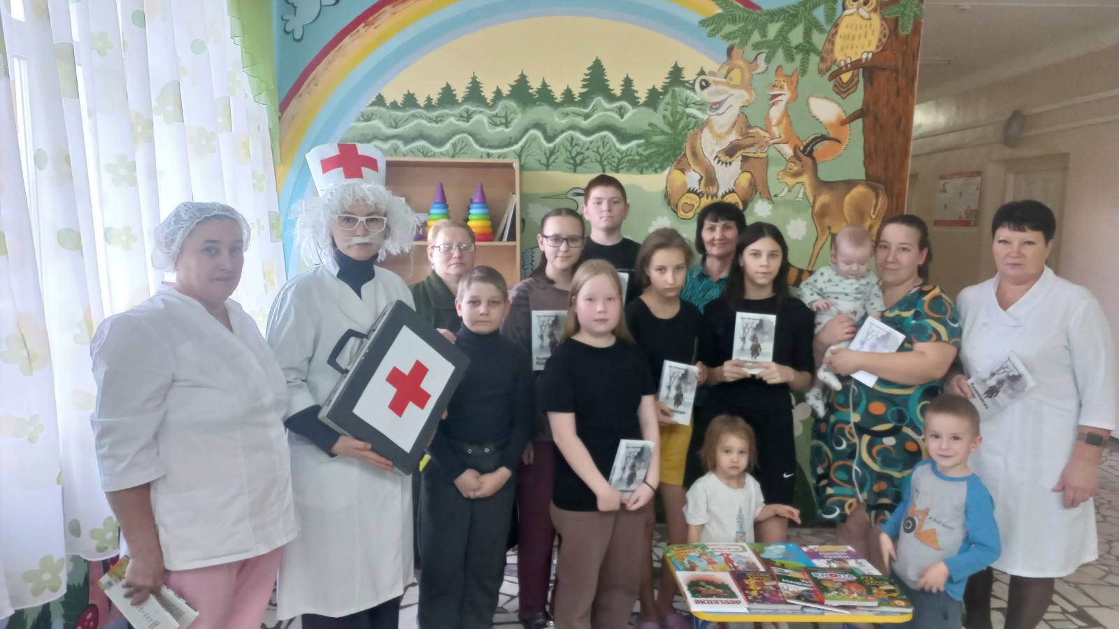 Мамадыш үзәк район хастаханәсенең педиатрия бүлеге пациентларына Мамадыш шәһәренең Үзәк балалар китапханәсе хезмәткәрләре Юлдус Фатыйхова һәм Татьяна Петухова килеп киттеләр.