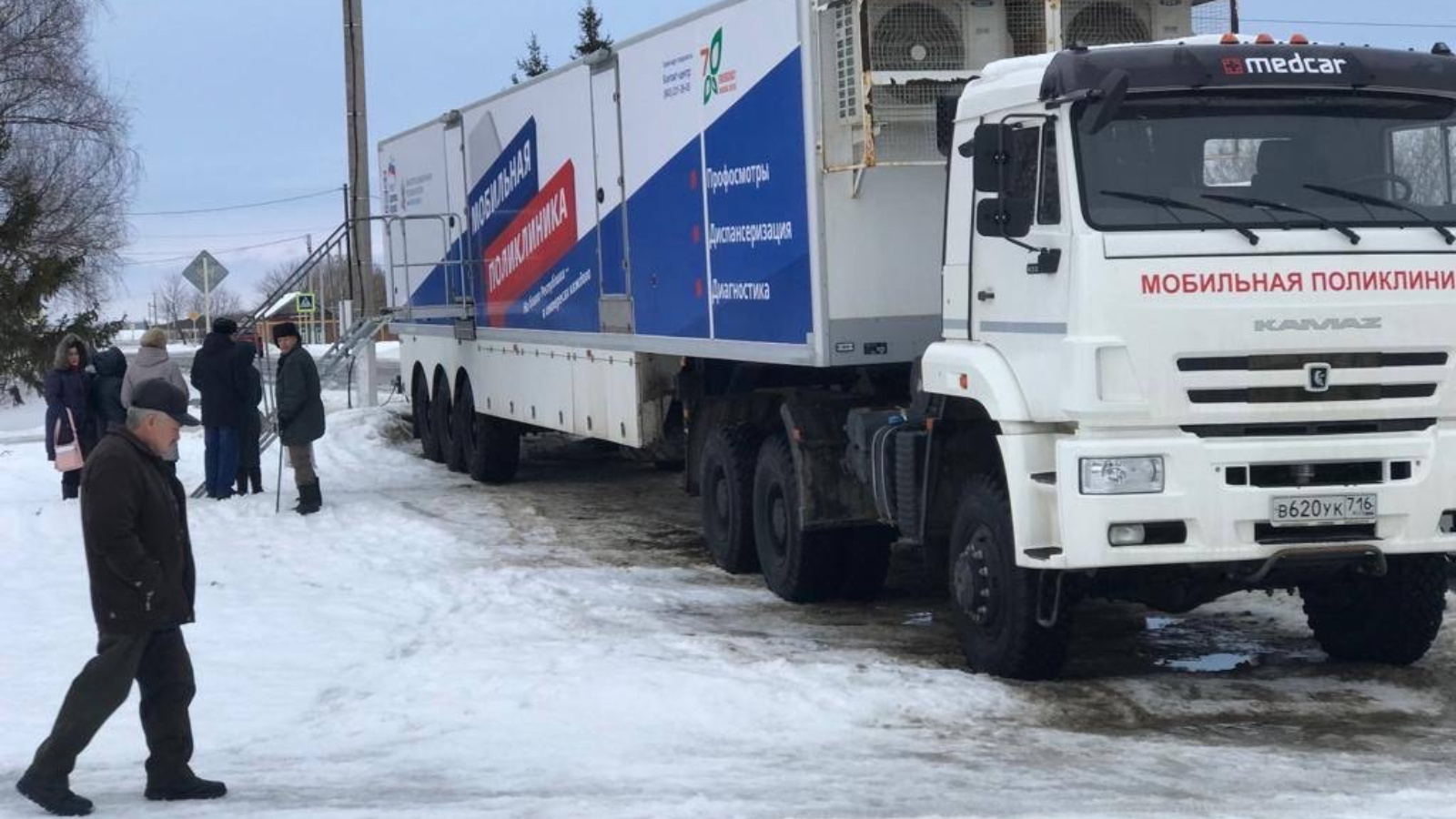 «Мобиль поликлиника» күчмә мобиль комплексы «Сәламәтлек саклау» милли проектының «Беренчел медицина-санитар ярдәм күрсәтү системасын үстерү» төбәк проекты буенча эшли.