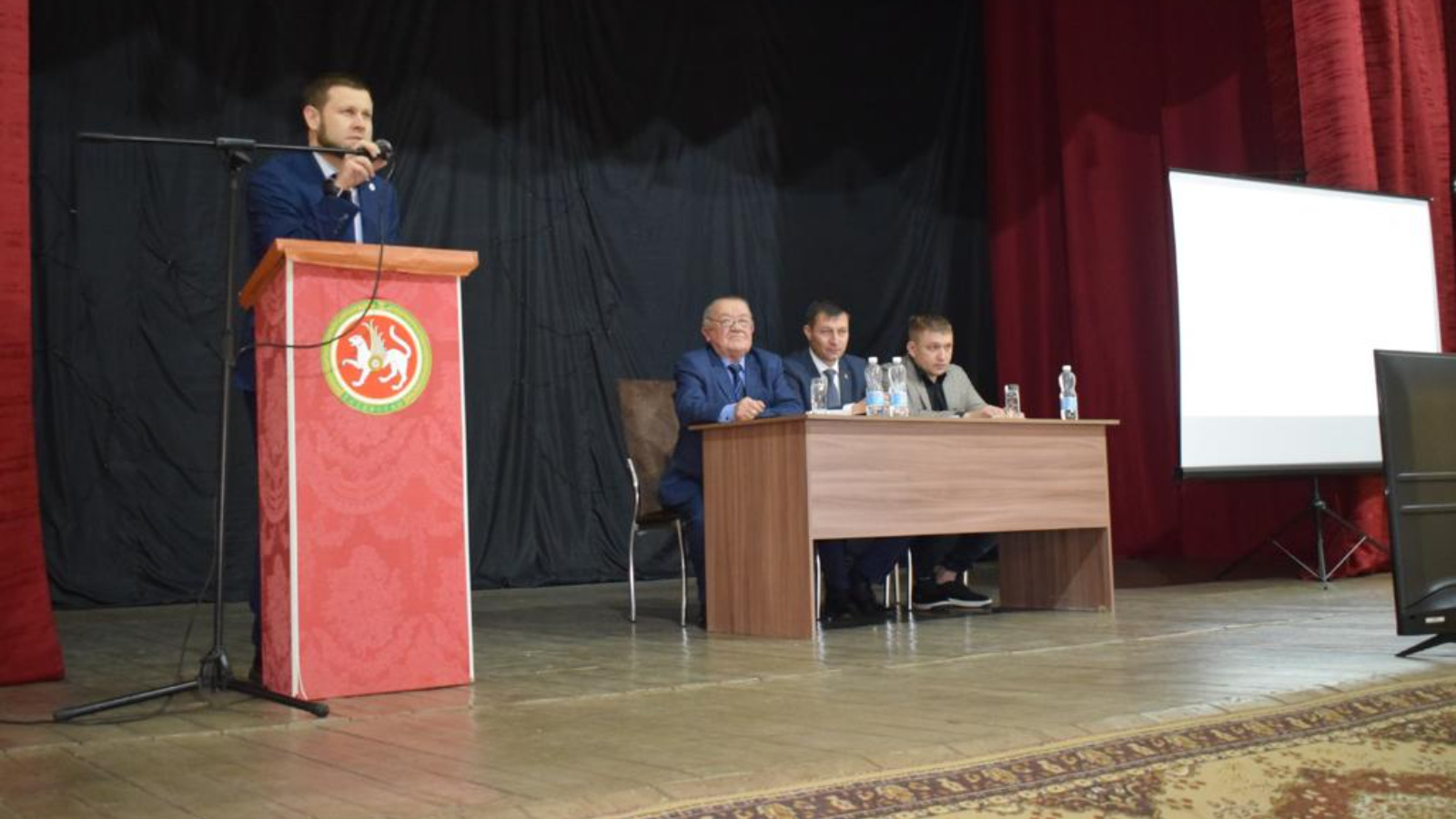 Җыен башланганчы медиклар делегациясе гражданнарны шәхси кабул итә. Баш табиб чарада районның сәламәтлек саклау системасындагы хәлләр турында доклад белән чыгыш ясады.