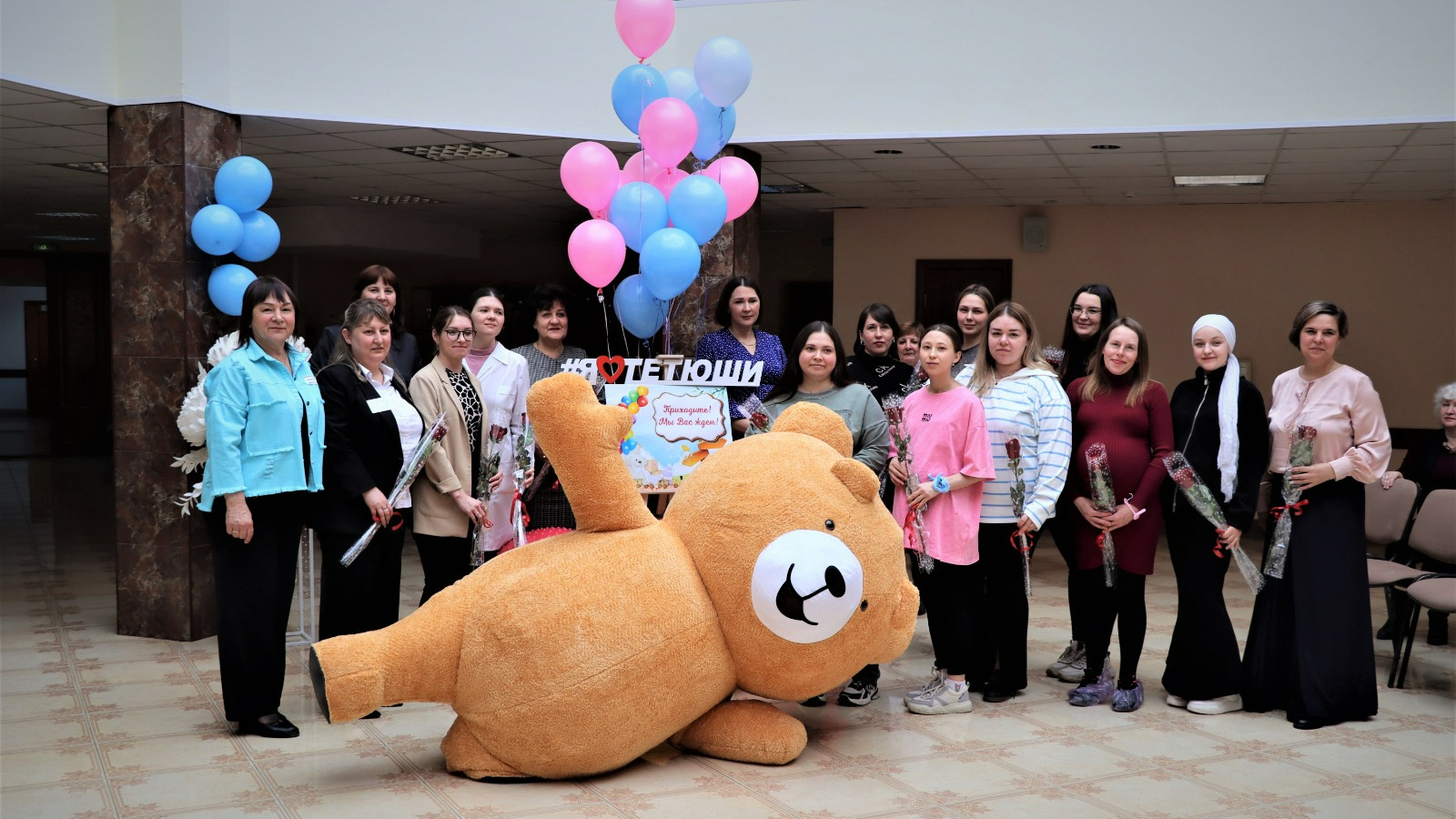 Бәйрәм интерактив форматта узды, музыкаль котлаулар һәм сюрприз - зур курчак чыгышы булды. Булачак әниләр йөкле хатыннарның көндәлекләрен һәм балалар китапларын алды.