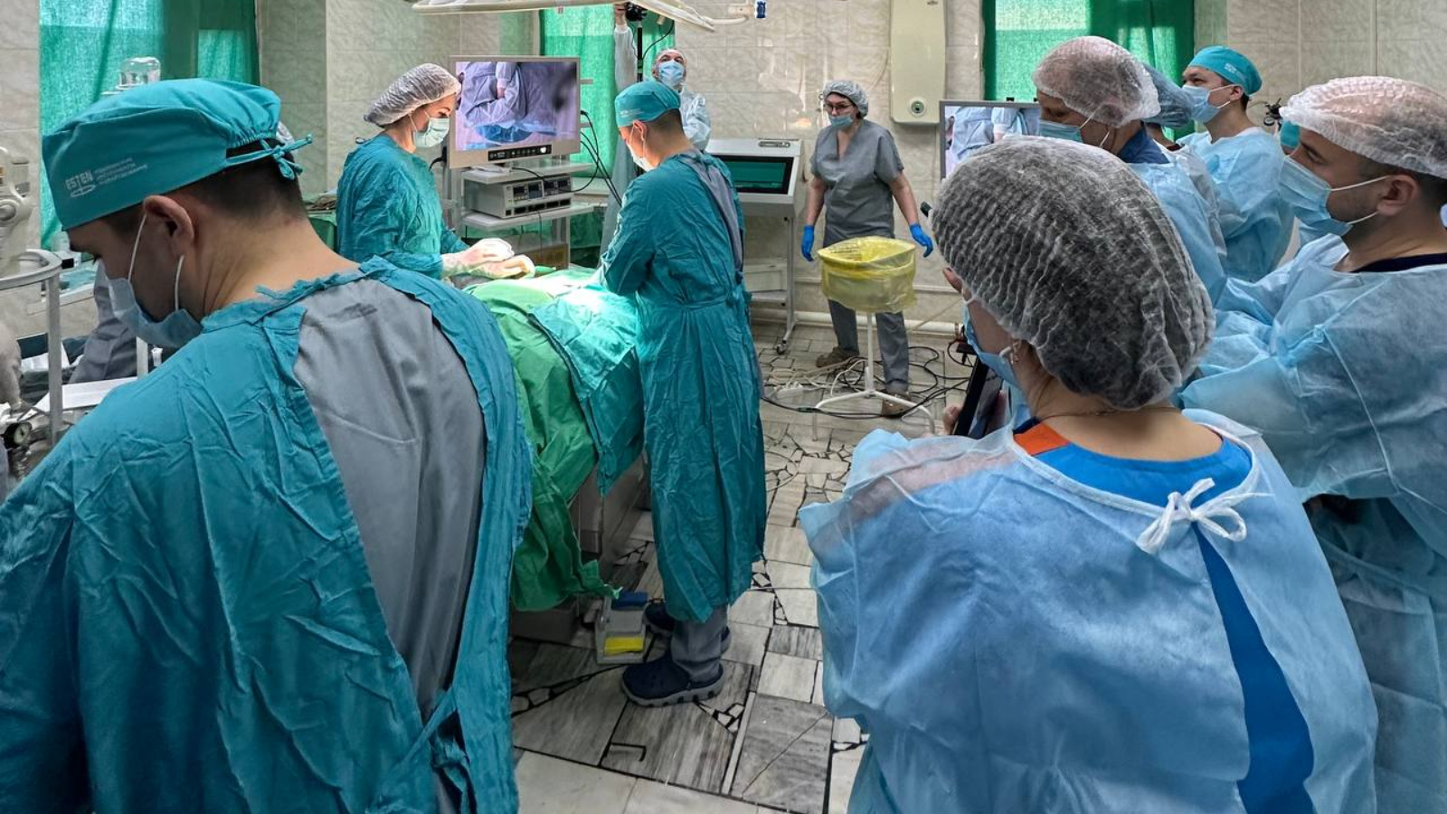 Семинарның практик өлешендә күрсәтмә операцияләр үткәрелде . Операция залыннан табиблар бүлмәсенә турыдан-туры видеотрансляция алып барылды.