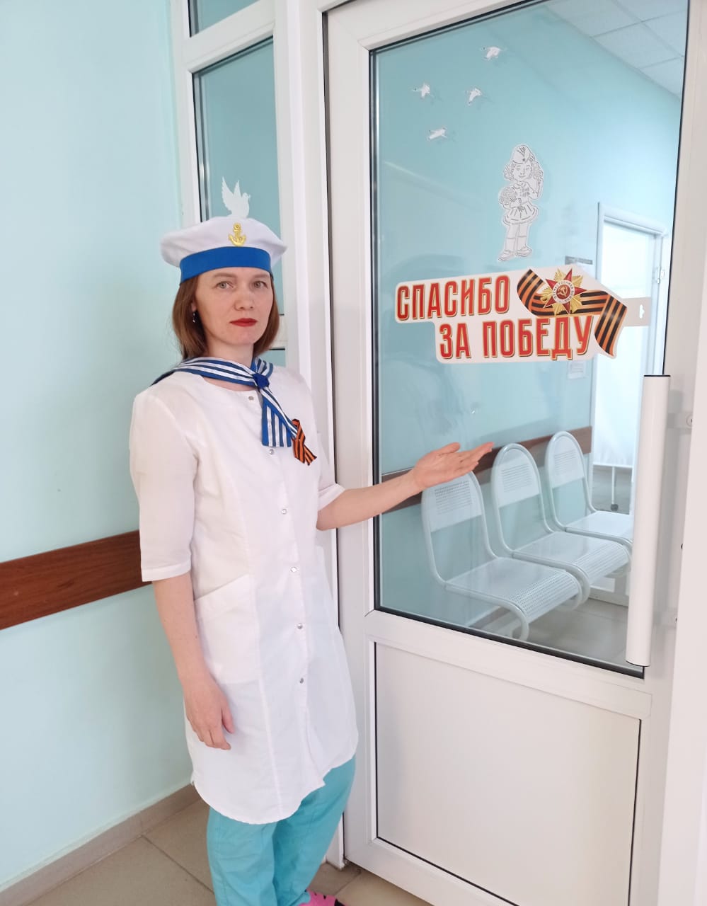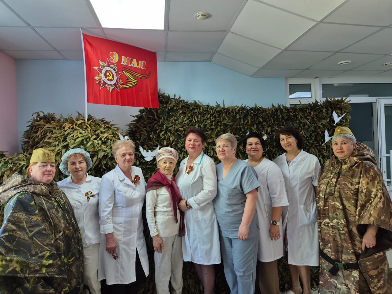 Район үзәк хастаханәсе хезмәткәрләре медицина учреждениесе тәрәзәләрен бизәүгә иҗади якын килделәр – пыялаларда торналар силуэты, Георгий тасмалары, йолдызлар һәм тынычлык символлары барлыкка килде. Һәр тәрәзә совет халкының батырлыгы турындагы гомуми хәтернең бер өлешенә әверелде. Стендларның берсендә район үзәк хастаханәсе хезмәткәрләренең Бөек Ватан сугышында катнашуы турындагы материаллар урнаштырылды.