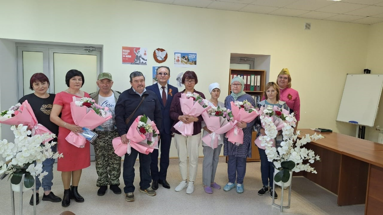 Хастаханә коллективы, профсоюз комитеты махсус хәрби операциядә катнашучыларның туганнарын чын күңелдән котлады, ә хастаханәнең баш табибы әзерләнгән истәлекле бүләкләр һәм чәчәкләр тапшырды.