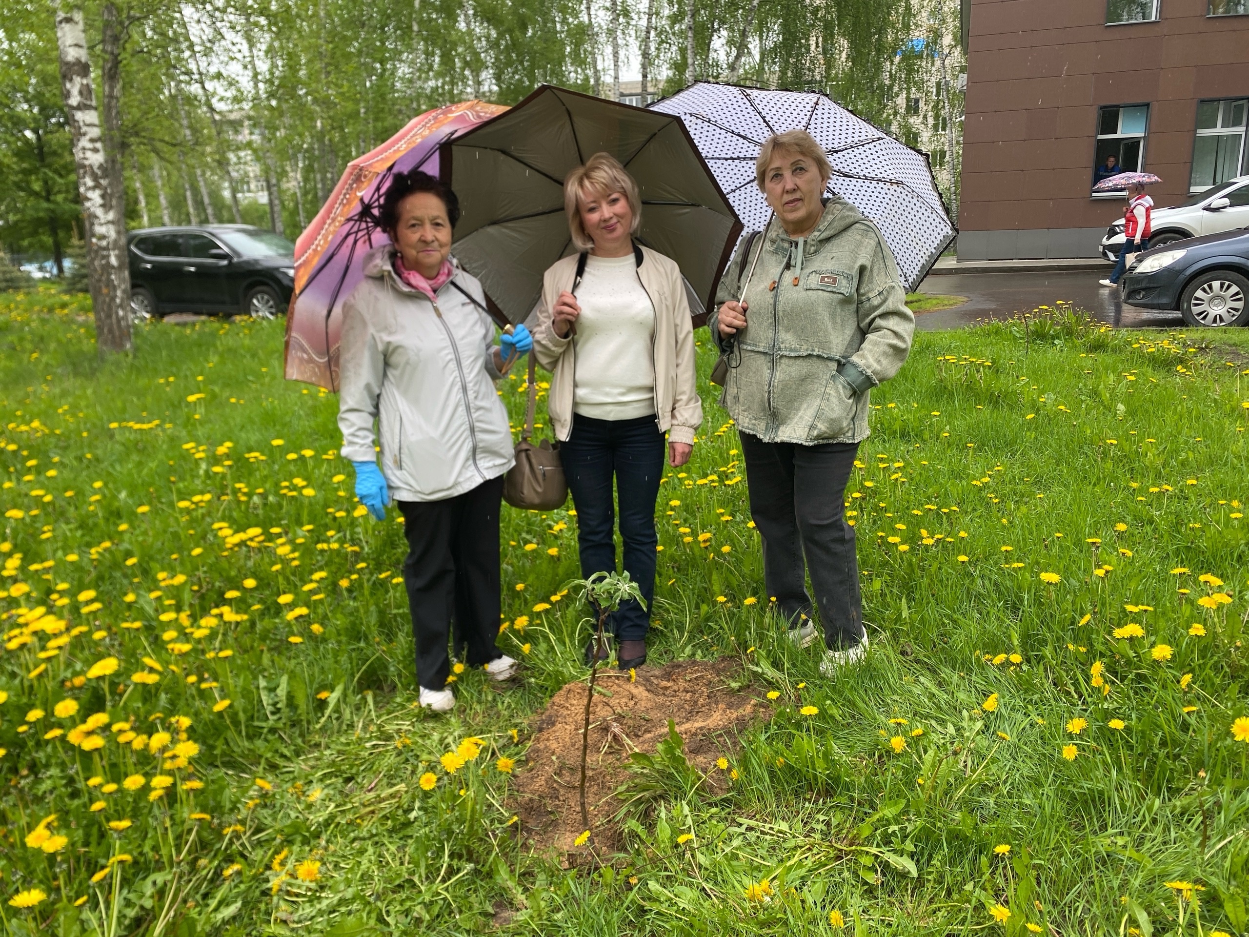 Мизгелнең тантаналылыгын хәтта яңгыр да бозмады. Шәфкать туташлары, үз эшеңә һәм бурычыңа тугрылык билгесе итеп, дус компания һәм зур энтузиазм белән утыртуга тотындылар.