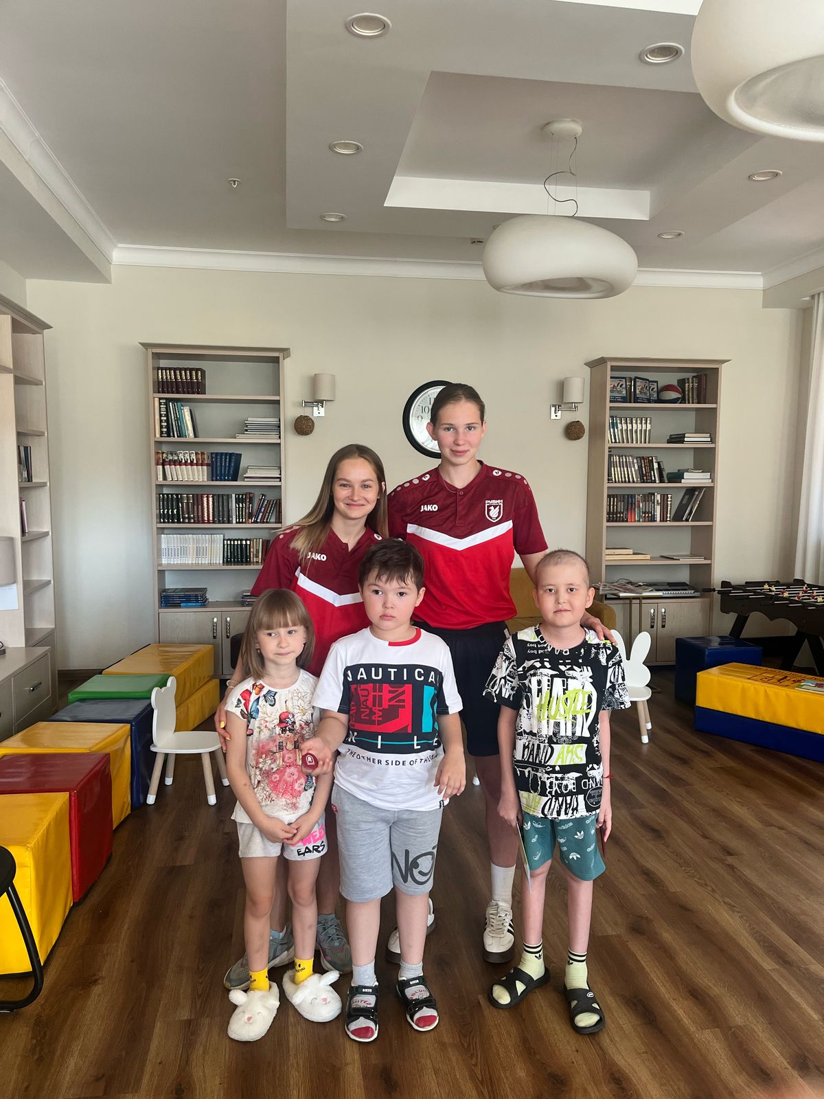 «Гаилә бергә» хәйрия фондының Гаилә йортында Балалар республика клиник хастаханәсенең кечкенә пациентлары һәм аларның ата-аналары «Рубин» ФК хатын-кызлар җыелма командасының төп составы футболчылары белән очрашты.