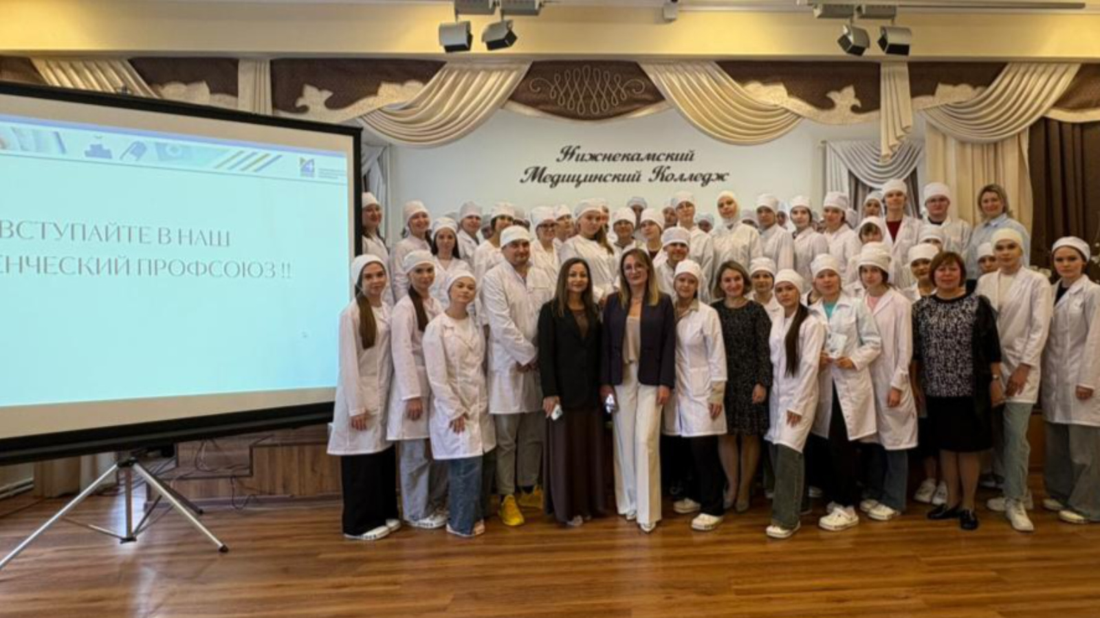 ТР Сәламәтлек саклау хезмәткәрләре профсоюзының Түбән Кама районы оешмасы рәисе Гөлназ Габдрәшитовна Клименко студентларны профсоюз әгъзасы булулары белән котлады һәм истәлекле бүләкләр тапшырды.