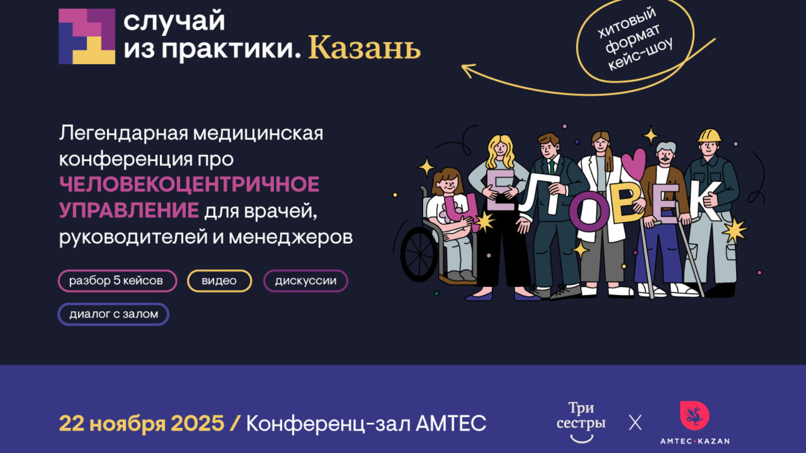 Конференция форматы — кейс-шоу, анда реаль тарихлар сәхнәгә әверелә, ә актерлар табиблар белән бергә клиник белемнәр генә түгел, эмпатия дә таләп итә торган ситуацияләрдә яши. Программада сәламәтлек саклау өлкәсендә медицина, психология, философия һәм менеджмент өлкәләреннән әйдәп баручы белгечләр чыгышлары. Без төрле экспертлар фикерен ишетәчәкбез, ә Татарстанның әйдәп баручы медицина үзәкләренең баш табиблары үз эшләрендә көн саен очраша торган кыенлыклар турында сөйләячәк һәм без барыбыз да эшли торган пациентларның фикерен ишетәчәк.
