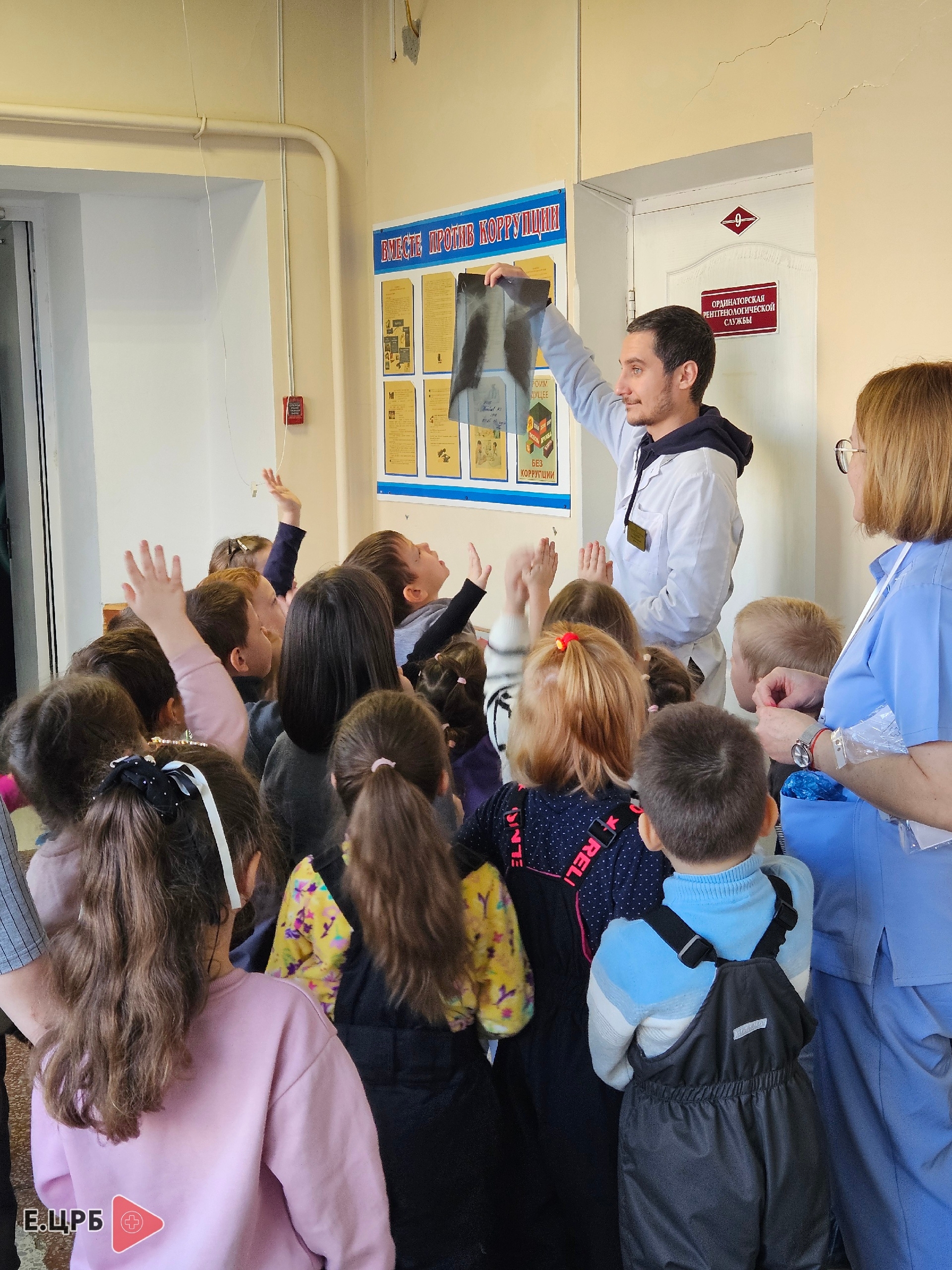 Өлкән шәфкать туташы Анна Кочнева җитәкчелегендә 5 яшьтән 7 яшькә кадәрге тикшеренүчеләр командасы балалар поликлиникасына мавыктыргыч сәяхәткә чыкты.