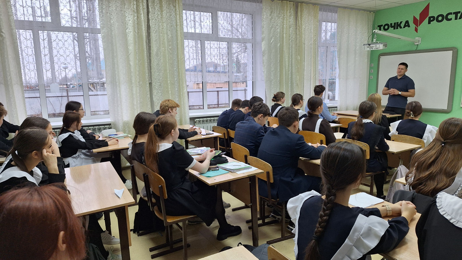 10-11 сыйныф укучылары өчен Айрат Дамирович «Яшүсмерләр арасында ВИЧ-инфекцияне профилактикалау» темасына мәгълүмати лекция үткәрде. Табиб вирус йоктыру юлларын һәм саклык чараларын җентекләп аңлатты.