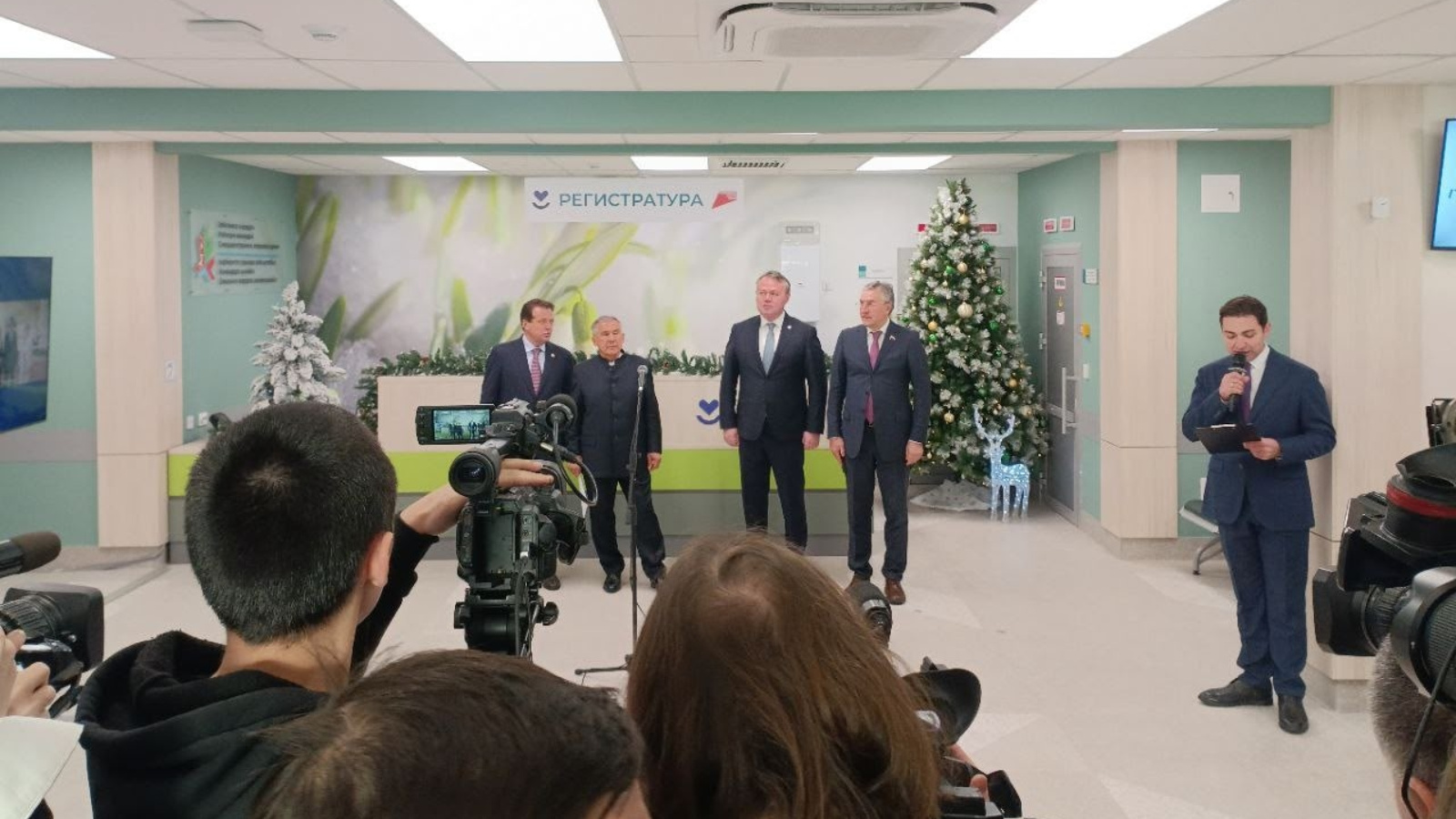 Татарстан Рәисе Рөстәм Миңнеханов «Яз» поликлиникасыннан видеоэлемтә режимында «Волжские просторы» балалар поликлиникасын ачты.