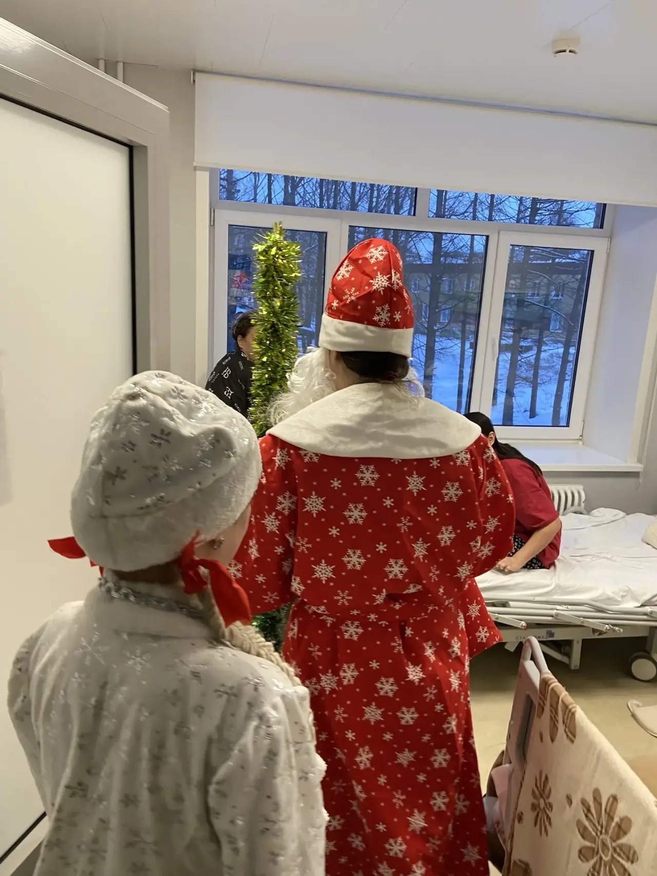 Пациентлар һәм хезмәткәрләр янына Кыш Бабай һәм Кар кызы кереп, аларга бераз тылсым һәм җылылык бүләк иттеләр.