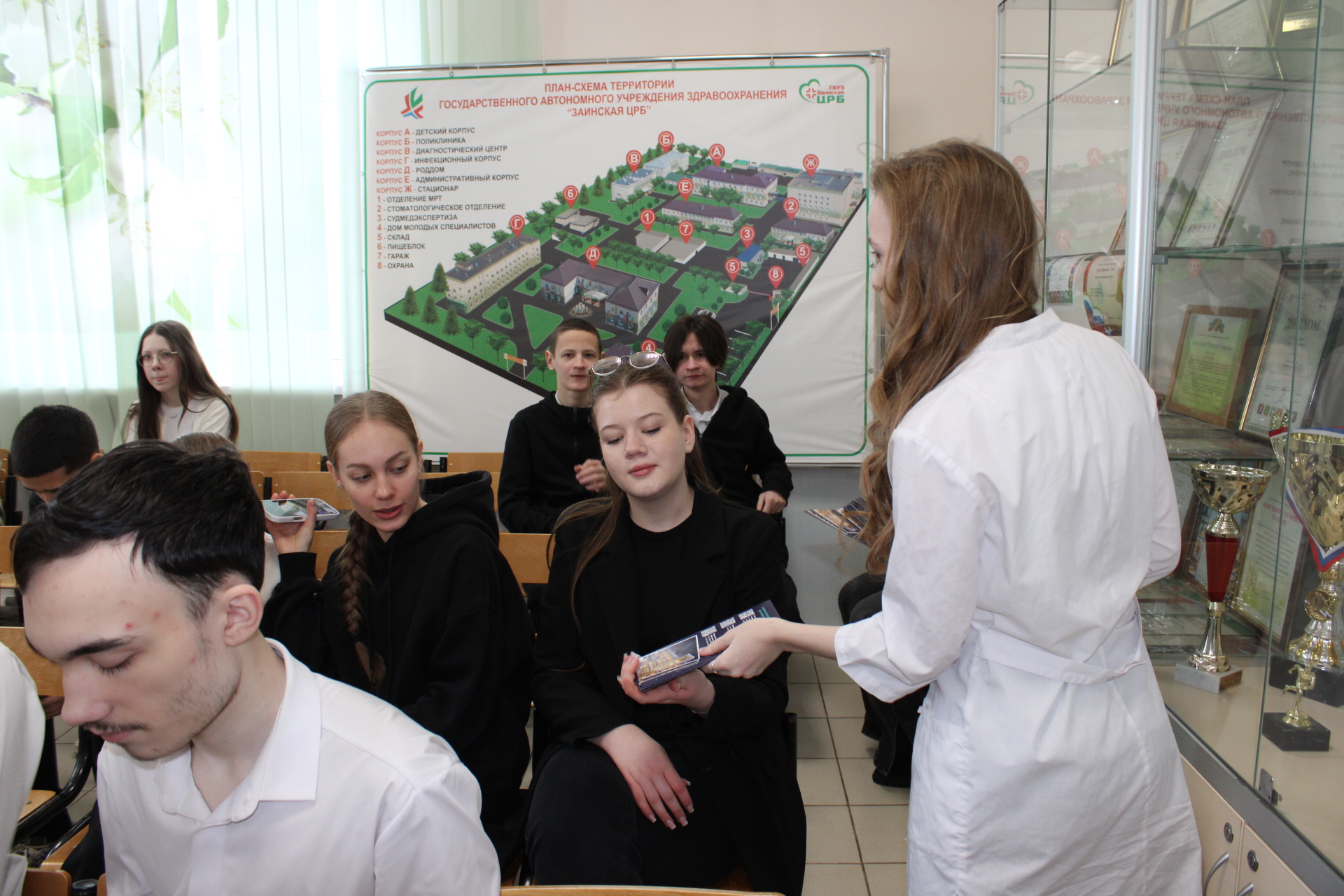 «Зәй район үзәк хастаханәсендә һәрвакыт яңа хезмәткәрләр кирәк, – дип ассызыклады Исаева». Ул хастаханәнең структурасы, аның бүлекләре, булачак абитуриентлар өчен мөһим булган нәрсә, сәламәтлек саклауга ярдәм итүнең яңа дәүләт программалары кертелү белән конкурентлыкка сәләтле булган хезмәт хакы дәрәҗәсе турында җентекләп сөйләде.