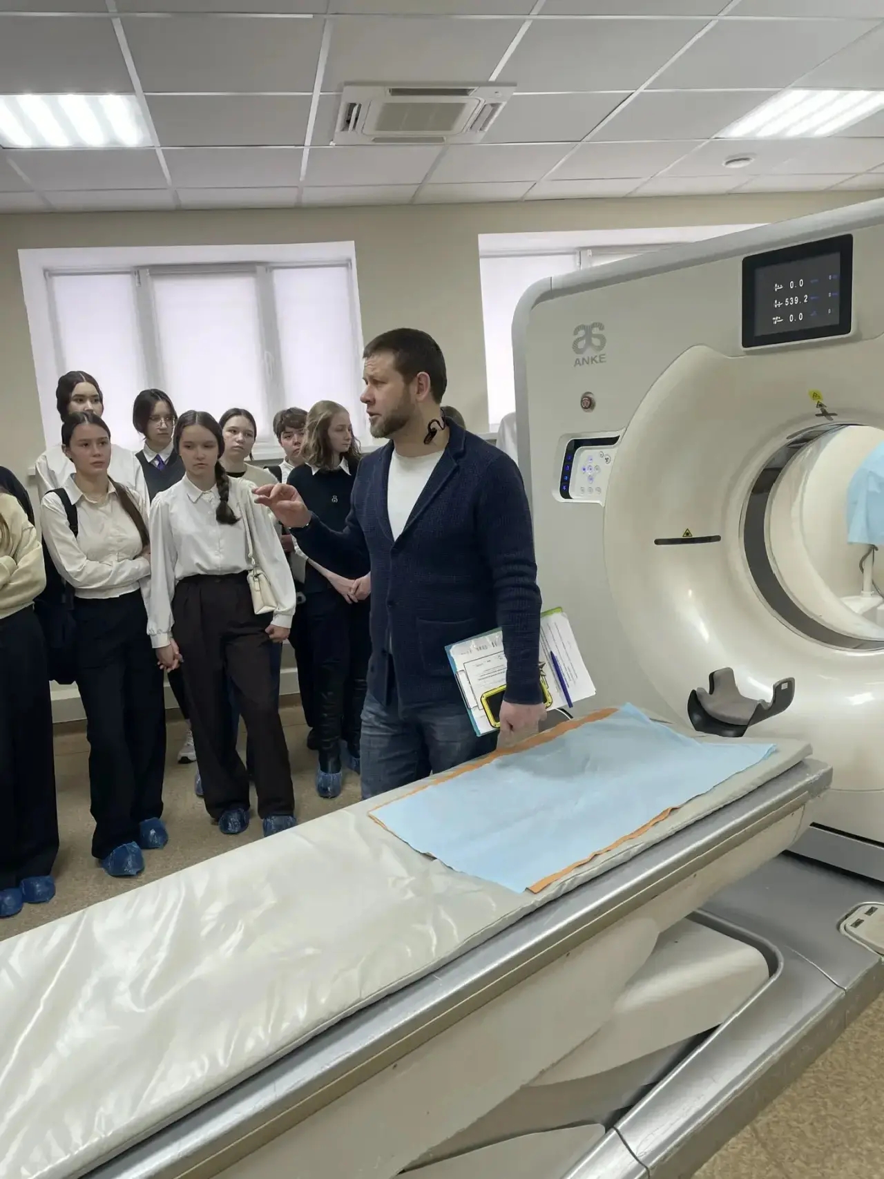 Үз тормышларын медицина белән бәйләргә хыялланган балалар алдында Алабуга район үзәк хастаханәсе баш табибы Мансур Потеев чыгыш ясады, ул әлеге игелекле һөнәрнең югары дәрәҗәдә әһәмиятле булуын билгеләп үтте.