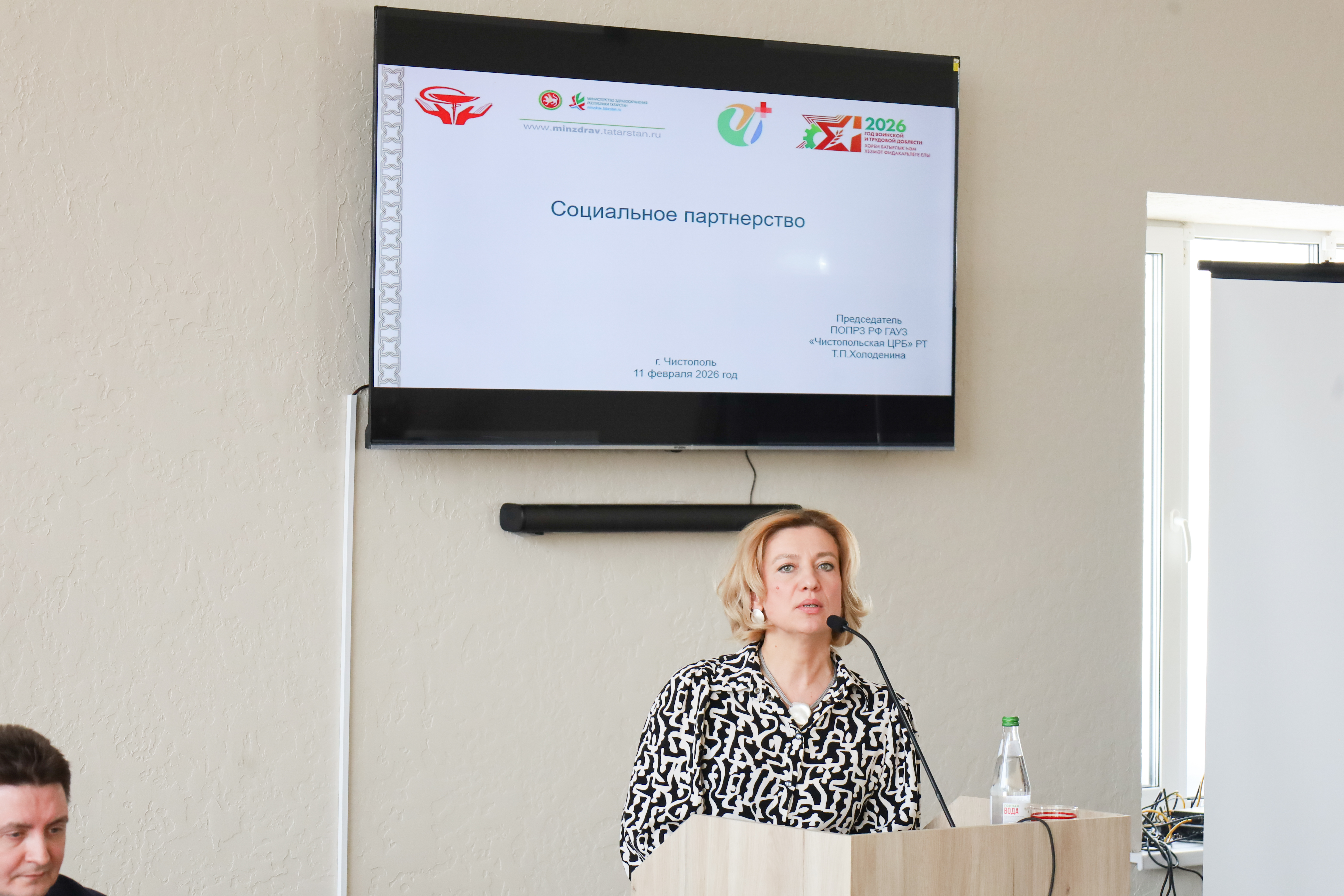 Социаль партнерлыкны үстерү турындагы нотык белән Сәламәтлек саклау хезмәткәрләре профсоюзының Чистай оешмасы рәисе Татьяна Холоденина чыгыш ясады.